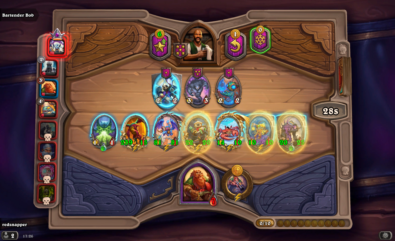 Улучшайте таверну в ходы с 5 и 6 монетами, чтобы раньше найти Таресгосу и других сильных существ 3-го уровня.