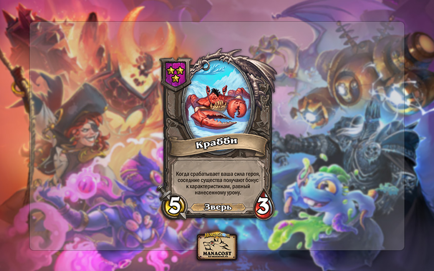 Как только на столе появляется компаньон, главный приоритет — не попасть в божественный щит. Сам нанесенный урон уже не так важен, как бафф характеристик от Крабби, особенно если на столе есть Таресгоса или хотя бы существа с божественными щитами и АоЕ атаками.