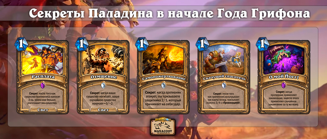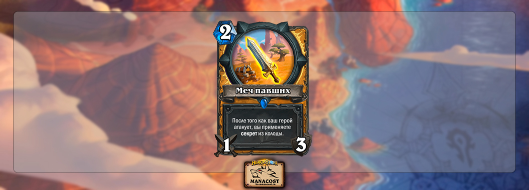 Главная причина играть секреты Паладина в будущем. Пусть сами по себе они не так хороши, но у Утера появился Меч павших. Оружие достает из колоды три секрета: не нужно тратить ману на их розыгрыш, не нужно добирать карты в руку. В колоде станет меньше слабых «топдеков», что не всегда очевидный, но сильный эффект — по тому же принципу работали Загадочный претендент или Пират Глазастик.