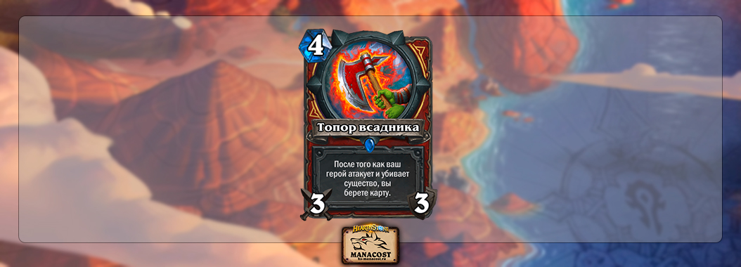 Воин с ротацией Стандарта потеряет и Рискового шкипера, и Боевую ярость — сильнейшие источники перебора колоды. Но у него останутся Корсарский тайник и Уроки боя. Топор всадника связывает эти карты вместе и позволяет Воину не сидеть с пустой рукой в новом дополнении.