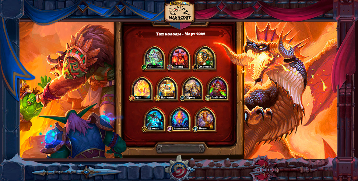 Начался новый мартовский сезон в Стандартном режиме. Представляем подборку лучших колод актуальной меты Разделенных Альтераком, с которыми можно без труда взять Легенду в марте 2022. Каждый найдет деку на свой вкус и для своей коллекции. Больше актуальных колод Стандарта в 2022 году ищите в специальном разделе сайта, который мы обновляем каждый день: Казакусан Контроль Воин Мордреш Маг Манускрипт Паладин Бафф Паладин Квест Разбойник Берн Шаман Фейс Охотник Квест Охотник Казакусан Друид Агро Таунт Друид Бист Друид Агро Жрец Тьмы Казакусан Жрец Квест Охотник на демонов Удачи! Наша группа Вконтакте, присоединяйтесь:![]()