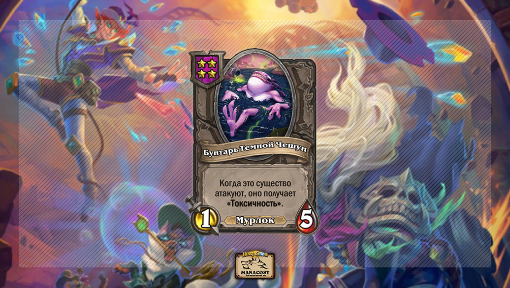 Бунтарь Темной Чешуи так хорош, потому что это универсальное существо. Его можно взять на любой стол, даже если там нет других мурлоков. Самое важное — провокация.