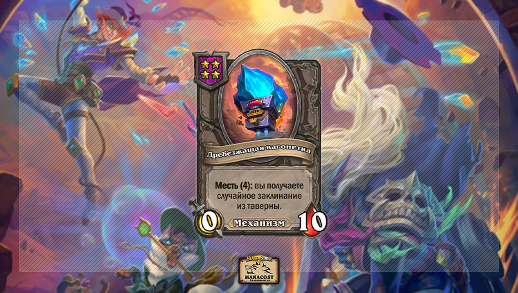 Дребезжащую вагонетку понерфили в последнем патче, но она все еще хороша. Это достаточно простой и стабильный способ генерации Заклинаний таверны, который временно могут взять многие композиции с липкими существами. Это не только механизмы, но и звери, и нежить, а порой и другие столы. Дребезжащая вагонетка станет сильнее, если вы возьмете 5-6 тиры таверны, потому что в пуле будет больше дорогих и сильных спеллов. Обычно в лейтгейме Дребезжащую вагонетку продают — это временный способ получить больше экономики и выгоды в мидгейме.