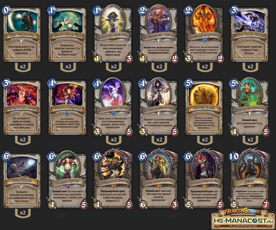 Колода с 80% винтрейтом. Играет против всех колод хорошо (все только зависит от хорошего захода). Против Ктуно колод (друида, воина, мага, разбойника) ни разу не проигрывал.
