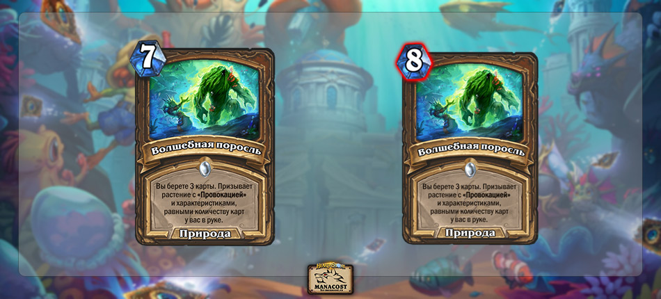 Достаточно ли будет нерфа только Волшебной поросли и Казакусана — вопрос открытый. О способах победы Друида мы поговорим чуть позднее. А сейчас стоит заметить, что разница между 7 и 8 маны не такая существенная, как, например между 3 и 4 маны. Друид все равно разгоняется по мане с Даром природы, у него есть Озарение, Гафф и т.д. Вероятно, Волшебную поросль продолжат играть в сборках — может быть, в одном экземпляре, а может и в двух.