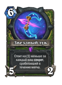 После ротации в Стандарте осталось немало синергий секретов, а в Основном наборе появился Оберег: малый изумруд. Все это под предводительством Продукта 9 вполне может воскресить архетип. Ловушки титанов помогут подогнать пул секретов под 5 разных, а новый секрет Уцененные товары, которые практически невозможно обыграть противнику, принесет в руку Звездный лук — главный источник урона Секрет Ханта.