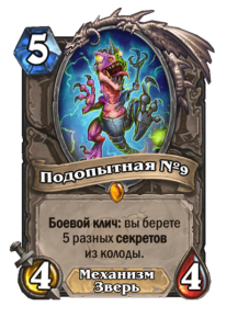 Гигантизация, которая дает в руку мурлока 8/8 с призывом еще одного с натиском, это полезный эффект, но тоже не настолько сильный, чтобы класть эту карту просто так куда попало. Важно то, что это боевой клич, а значит его можно утроить Дрыжеблоком. Рено Шаману очень не хватает сильных боевых кличей для этой мощной легендарки — настолько, что ему приходится играть странные комбинации с Хагатой Мифической.