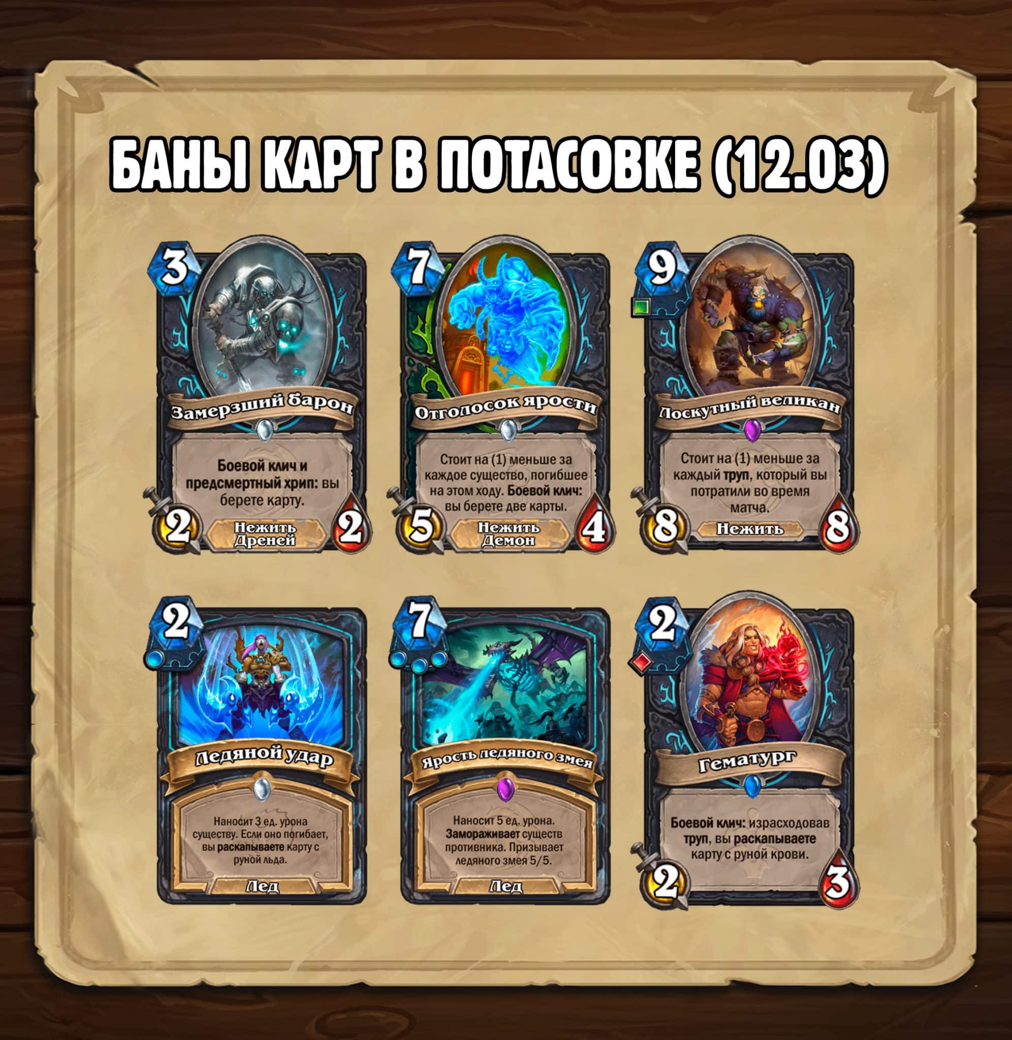 [Обновлено 12.03] В потасовке были заблокированы 6 карт Рыцаря смерти. Если вы находитесь в заявке с этими картами, используйте кнопку отступить, чтобы получить награду, а также 2 пропуска в таверну в качестве компенсации.