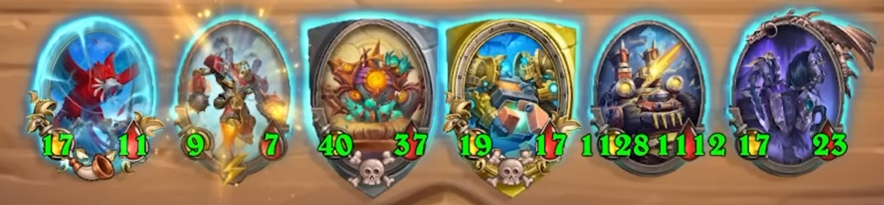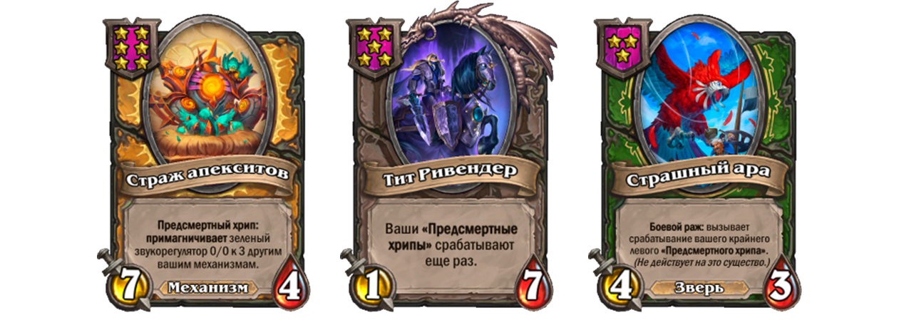 Механизмы сейчас — сильнейшая стратегия по данным Firestone и HSReplay. Собрать этот стол несложно, так как в основе лежит всего три существа, однако самое важное из них — Страж апекситов — находится на 6-м уровне таверны. Стратегия универсальна и, помимо основы, имеет различные вариации сборки. Самым ярким решением последних дней стала связка Упорного поэта с Пустынной мерзостью или Гостем жуткого чаепития. Подробнее о стратегии вы можете прочитать по ссылке.