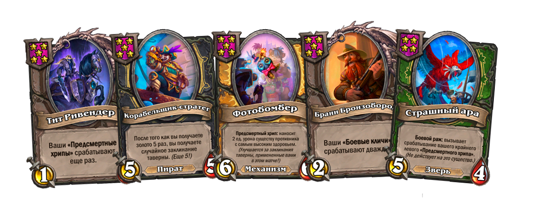 Первое, что вам требуется, — это стабильная генерация заклинаний. Самым оптимальным вариантом является Корабельщикстратег и Бранн Бронзобород в сочетании с картой, которая будет давать золото, — например, Адмирал Флота Тетрис. Такая комбинация обеспечит вам хорошую экономику для нахождения Фотобомбера и его усиления. Также интересным способом получать заклинания могут стать Рилак Металлист в связке с Коллекционером раковин или Звездой родео.