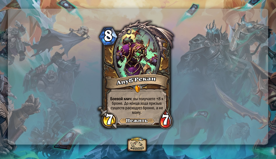 Рамп Друид не показывает космических цифр винрейта, но колода всё еще очень сильная, а лейтгейм комбинации с АнубРеканом выглядят нездорово. Можно понерфить и другие карты: Бранна Бронзоборода, Гаффа Вольное Сердце или Асталора Кровавую Клятву. Но самой проблемной картой кажется все-таки АнубРекан.