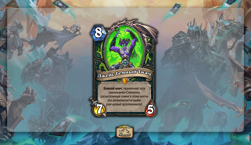 Колоды ДХ явно проблемные, что особенно очевидно в Легенде, потому что играть Охотником на демонов не так уж легко. Но если вы встретитесь с опытным ДХ, то часто почувствуете отсутствие какого-либо выбора в игре. Противник просто в один прекрасный ход лишит вас стола, восстановит полное здоровье, а потом и пробьет любое количество здоровья и брони.