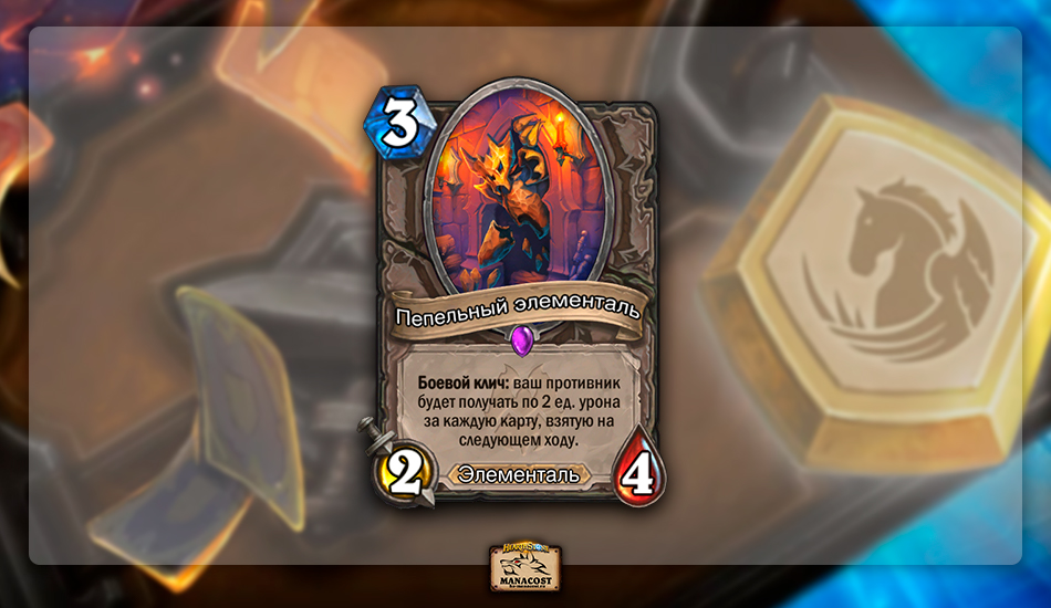 Нейтральная карта с уникальной механикой, которая создана для борьбы с Разбойниками, Друидами и в целом деками, которые активно перебирают колоду. Должна случиться очень специфичная мета, чтобы в таком виде этот элем заиграл в ладдере — и условия так и не возникли. Но идея для технической карты интересная: может быть, стоило сделать ее чуть сильнее или дешевле. Или другой вариант — дать эффекту похищение жизни, который бы работал на героя, который сыграл этого элементаля.