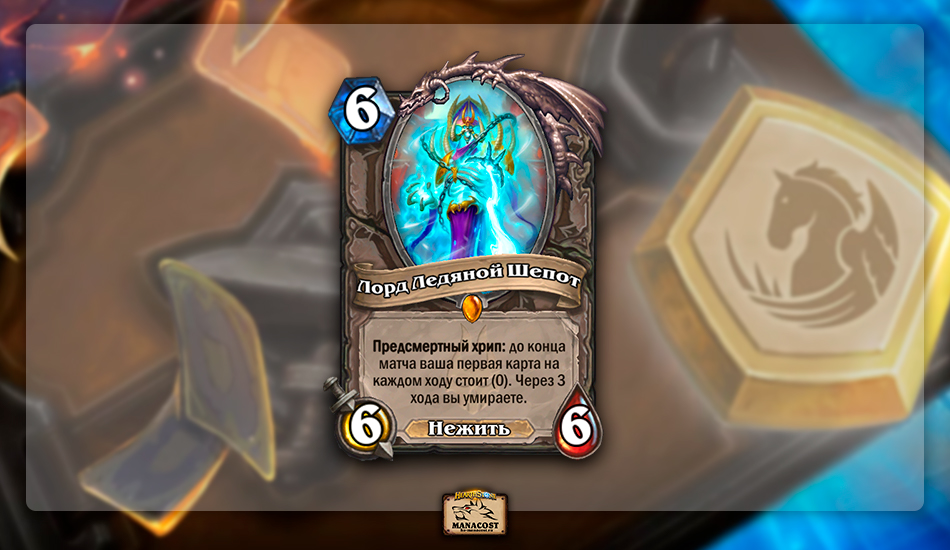 Пожалуй, Лорду Ледяному Шепоту помешало то, что его эффект активируется только после предсмертного хрипа. Надо или тут же убивать существо своими картами или ждать хода противника. И оппонент может дать немоту или иначе лишить вас эффекта легендарки. Интересно посмотреть, что бы изменилось, если бы у Лорда Ледяного Шепота был боевой клич.