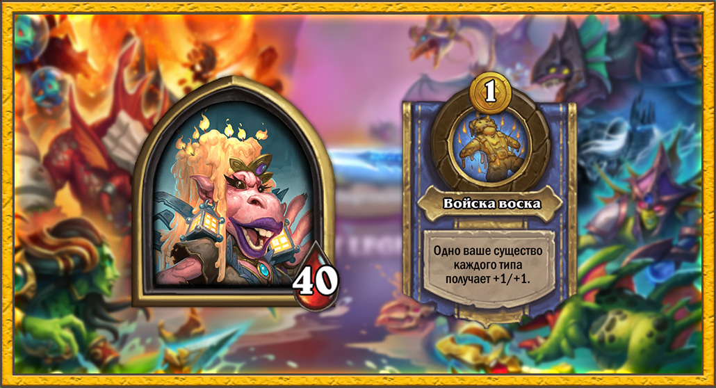 Может быть, Королеву Пыхлевих можно баффнуть в стиле Гаффа Рунического Тотема, то есть поднять стоимость силы героя до 2 монет и существенно увеличить бонус характеристик. Но это опаснее в случае с Пыхлевих, потому что существ всех типов можно найти уже на 1 уровне таверны, а Гафф находит более 3 целей для баффа только с высокими уровнями таверны.