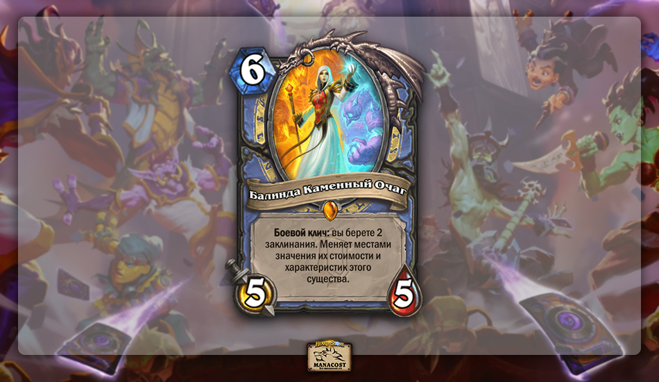 Не сказать, что Балинда Каменный Очаг — такая уж ужасная карта, как и Биг Спелл Маг не такая уж плохая колода в мете. Но сама идея за Балиндой какая-то очень прямолинейная: нужно только собрать подходящую колоду, а после вы всегда сможете поставить 10/10 или 9/9 существо на 6 маны, а вместе с этим взять два сильных заклинания и изменить их стоимость. Играть такой легендаркой не очень интересно, да и против нее тоже — делает одна всегда одинаковые и предсказуемые вещи, а матч-ап с Биг Спелл Магом во многом зависит от того, зашла ли ему в руку Балинда или нет.