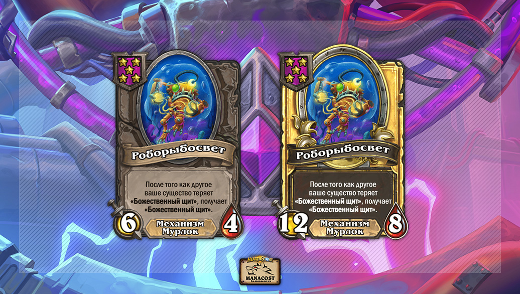 Хороша и одна копия этого юнита: чем-то она будет напоминать Блокобота, хотя перезаряжать божественный щит можно куда чаще. И не забывайте, что с мурлоками теперь всё это тоже хорошо работает: у них есть много божественных щитов и топовые способы баффов статов.