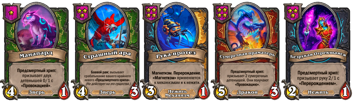 Манапард после смерти призывает двух существ с провокацией, что позволяет дольше жить вашим крайним правым существам, такими как, например, Тит Ривендер.