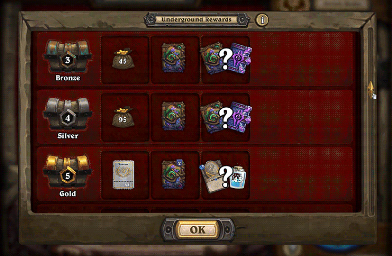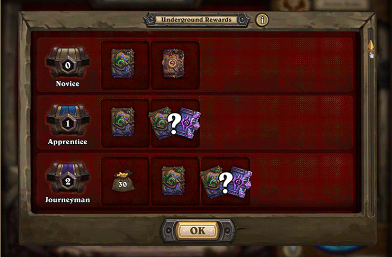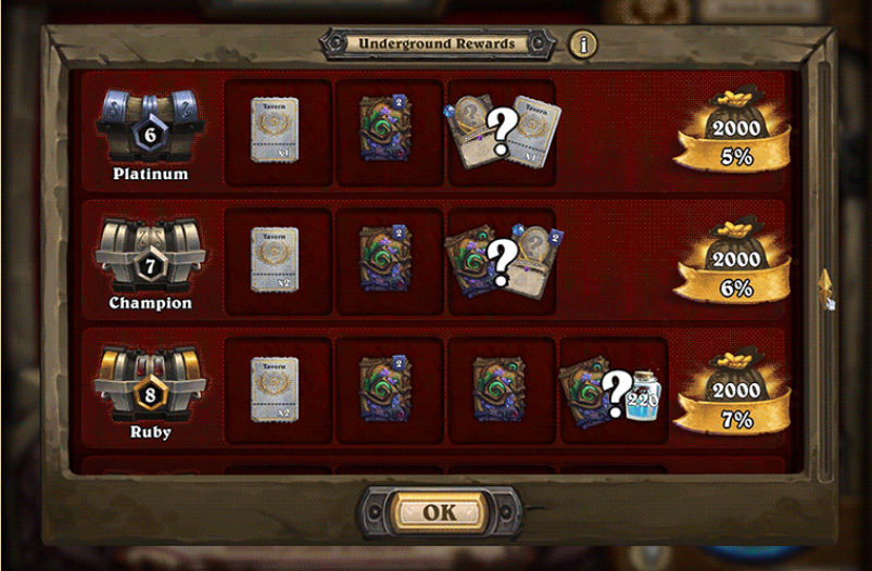 Тех, в ком кипит дух соревнований и кто хочет блеснуть своими навыками составления колоды, ждет Подполье! Докажите, что достойны серьезной игры, победив в семи непоследовательных матчах на обычной Арене (с любым числом поражений между победами), и тогда вам откроется Подполье. Это более сложный и рисковый формат с большими наградами.