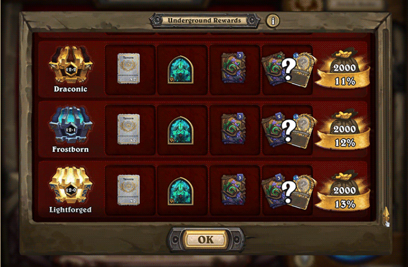 На обычной Арене противники подбираются по близкому уровню умений в Hearthstone. На Подпольной Арене, в свою очередь, в матче могут встретиться игроки с совершенно разными навыками. С этого обновления рейтинговые таблицы будут основаны только на Подпольной Арене. Результаты прошлых сезонов до выхода обновления также будут доступны онлайн.
