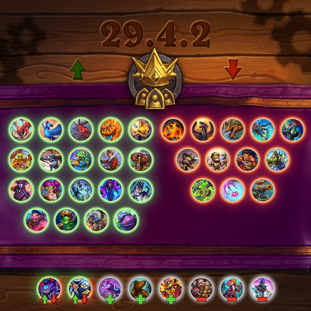 Официальный аккаунт Hearthstone в Twitter опубликовал анонс обновления 29.4.2, запланированного на этой неделе. В него войдут изменения баланса для Стандарта и двух форматов Полей сражений.