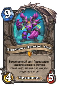 • Зиллиакс Делюкс 3000 — стандартная угроза для любых среднетемповых и медленных колод. Хорошо отбивает стол и помогает с исцелением.