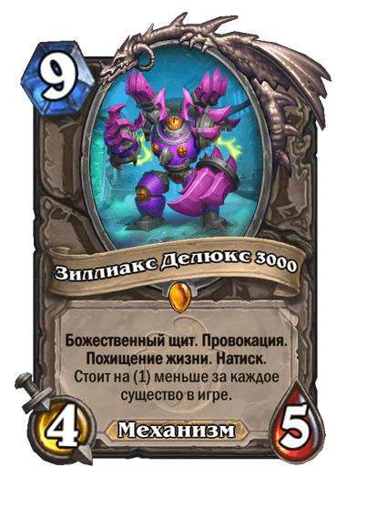 • Зиллиакс Делюкс 3000 — стандартная угроза для любых среднетемповых и медленных колод. Хорошо отбивает стол и помогает с исцелением.