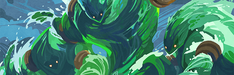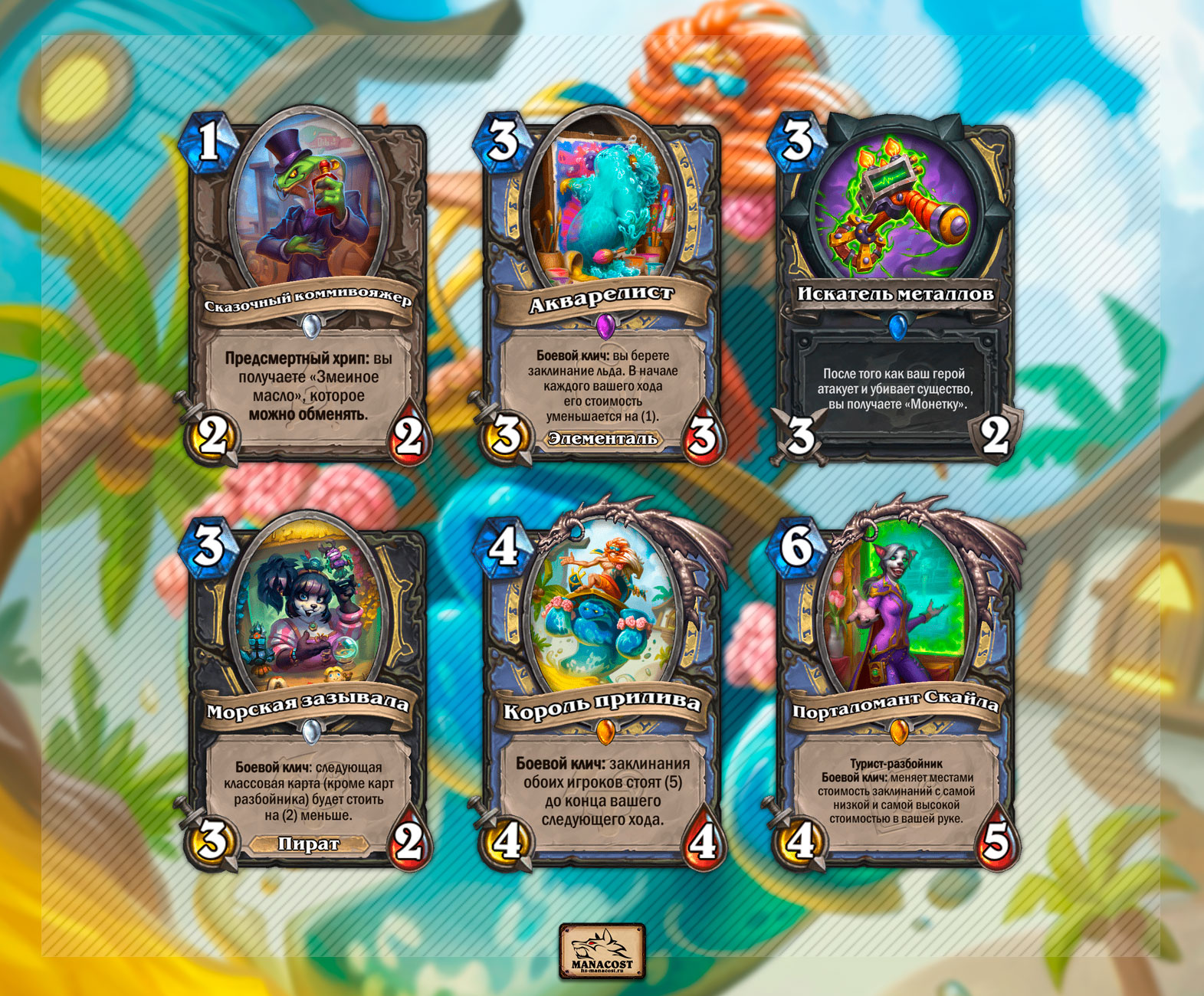 Цунами, кажется, вовсе не стало слабее. Теперь спелл лучше работает с Акварелистом (сыграть Цунами можно быстрее) и Морской зазывалой, да и все еще есть вакантный слот заклинания за 8 маны для синергии со Сферой галакси-проекции. Чуть хуже стали только комбинации с Королем прилива и Порталомантом Скайлой, хотя ничего критичного тут нет. NoHandsGamer использует недавний тренд на Диджея Манашторма, с которым тоже можно рано реализовать ключевые карты или облегчить тяжелую руку, которая иногда скапливается из-за Аудиораспределителей.