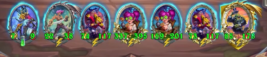 Чтобы раскрыть Чудовище буги на максимум, нужно собрать несколько копий этого существа и добраться до 6-го уровня таверны. Только так вы найдете достаточно тир-6 юнитов для стабильного получения статов.