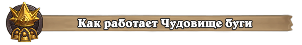 Чудовище буги дает бафф +1/+2 всему столу, когда вы разыгрываете юнитов требуемого тира. Сначала это тир-1 юнит, после его розыгрыша бафф дается за тир-2 существо, и так далее — до тир-6. После прокачки Чудовища буги до 6-го уровня он всегда дает бафф за розыгрыш тир-6 угроз. Новое купленное или золотое Чудовище буги всегда начинают отсчет с 1-го тира.