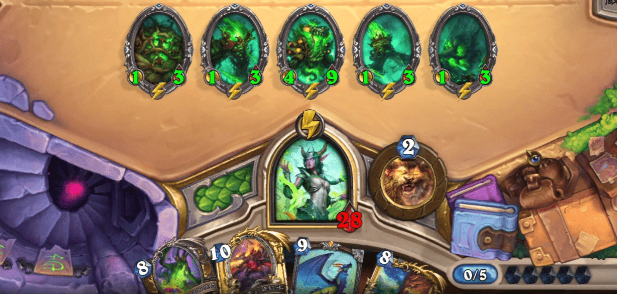 Меритра из Сна — один из основных способов победы. Чтобы реализовать эту карту, её нужно сначала зарядить: потратить 25 маны, пока она находится в руке. После этого вы получите полную руку драконов за 1 ману. Среди них могут быть как очень сильные драконы, так и небольшие угрозы. При этом вы можете получить драконов любого класса. За один ход колода способна заполнить стол драконами, и справиться с таким давлением сможет далеко не каждый противник.