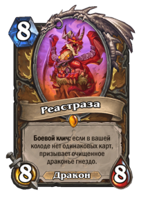 Пока что не ясно, будет ли Дракон Друид играть Рено версией с 30-40 разными картами или классической с парами. Классический подход даст больше стабильности, да и сильных драконов, отмеченных выше, можно использовать в двух копиях. Но тогда класс останется без Реастразы — сильной карты с бесконечной выгодой.