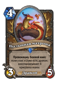 Бесплатная провокация 3/5 для любой колоды Дракон Друида — как от такого можно отказаться? Это очень сильная темповая карта с эффектом маначита. А как мы знаем из истории игры, маначит всегда хорош. Для Пустынной матроны и многих других карт важно, чтобы в руке не закончились драконы — их Друид должен будет брать в колоду в большом количестве, а еще нужно активно добирать карты. Хорошо то, что с добором у Друида обычно проблем нет.