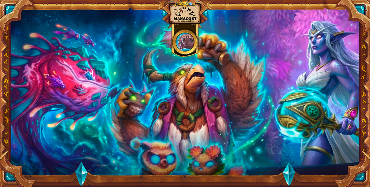 Эта итерация Друида на копиях обязана своим появлением двум новым картам из мини-набора. Первая — это, конечно, Аура ускорения. Дополнительный кристалл маны на протяжении трех ходов позволяет обогнать противника по темпу, рано выставить локации и без страха выпускать на поле Любителя фотографии (который сам по себе является довольно слабым пятым дропом). В поздней игре аура также не теряет актуальности, помогая провернуть ОТК пораньше.