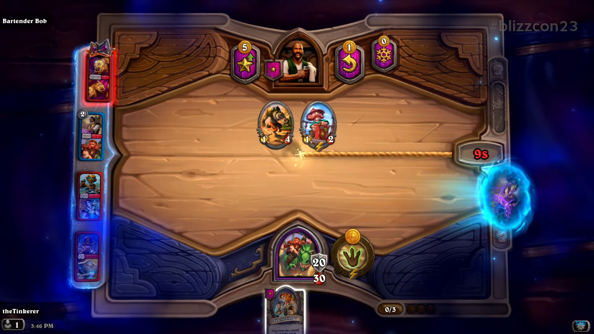 Отмечать можно не только существ, но и кнопки улучшения или заморозки таверны, силы героя и т.д. Если вы помечаете что-то на своем поле, напарник увидит оповещающий сигнал из портала.