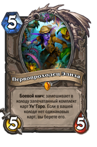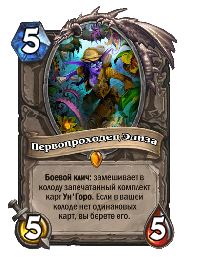 Первопроходец Элиза Боевой клич: замешивает в колоду запечатанный комплект карт Ун’Горо. Если в вашей колоде нет одинаковых карт, вы берете его.