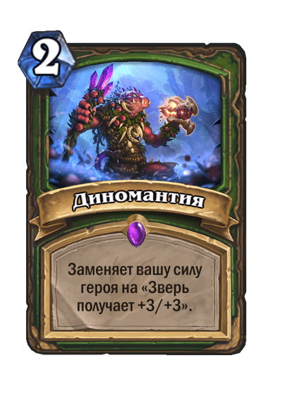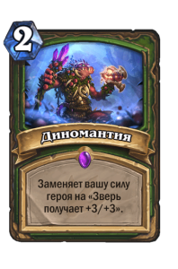 Диномантия Заменяет вашу силу героя на «Зверь получает +3/+3».