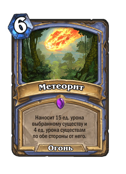 Метеорит Наносит 15 ед. урона выбранному существу и 4 ед. урона существам по обе стороны от него.