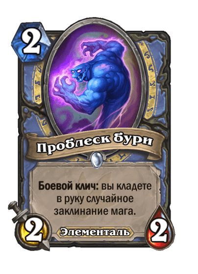 Маг Проблеск бури 2/2. Боевой клич: вы кладете в руку случайное заклинание мага.