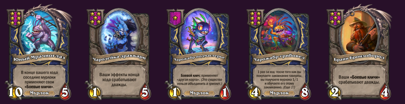 Мурлоки через Чарожабра-подмастерья снова в пуле топ-стратегий. Колода по-прежнему строится вокруг Чарожабров-подмастерьев, которых мы обучаем Блестящим кольцом, Азеритовым усилением или Управлением временем. Кудесник Скверны также отлично проявляет себя в этой стратегии.