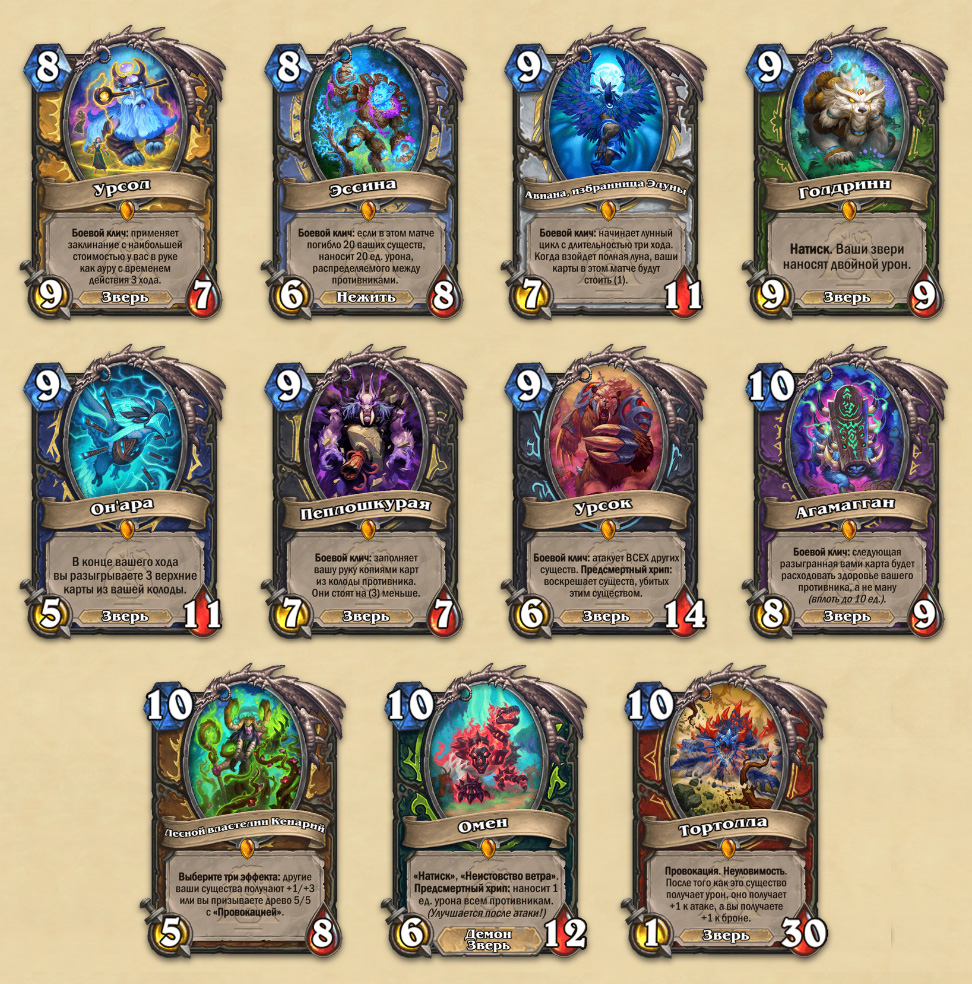 Ключевой картой колоды стал Хамуул Рунический Тотем со своим эффектом начала матча. Пусть заряженная сила героя Друида и самая слабая из всех, в отличие от остальных классов с Хамуулом ее можно разогнать до действительно огромных значений, причем без особых трудностей.