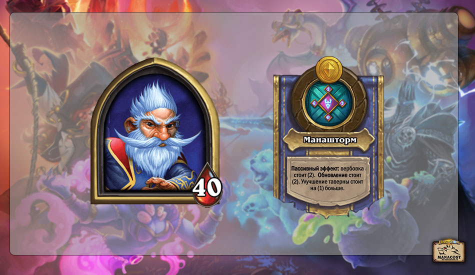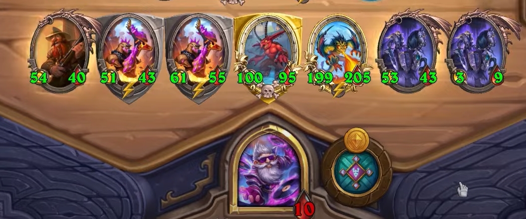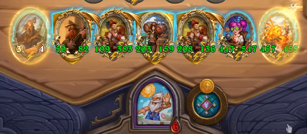Ход с 8 монетами — обычно в этот ход Миллхаус Манашторм берет 4 уровень таверны, на что уходит все его золото. После можно сыграть золотое существо или подождать с ним еще один ход, чтобы раскопать тир-6 существо.