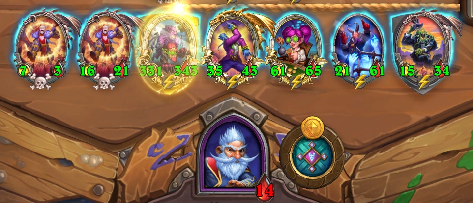 Ход с 7 монетами — покупайте существо, продавайте существо и улучшайте таверну. Если собираете триплет к этому ходу или ранее, старайтесь держать его в руке или замороженным в таверне — сыграть его нужно под взятие 4-5 тиров.