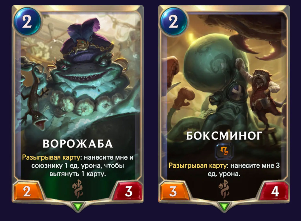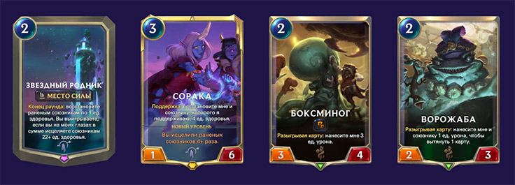 Картинка карт в муллиган, карты «Ворожаба», «Звездный родник», «Сорака», «Боксминог»