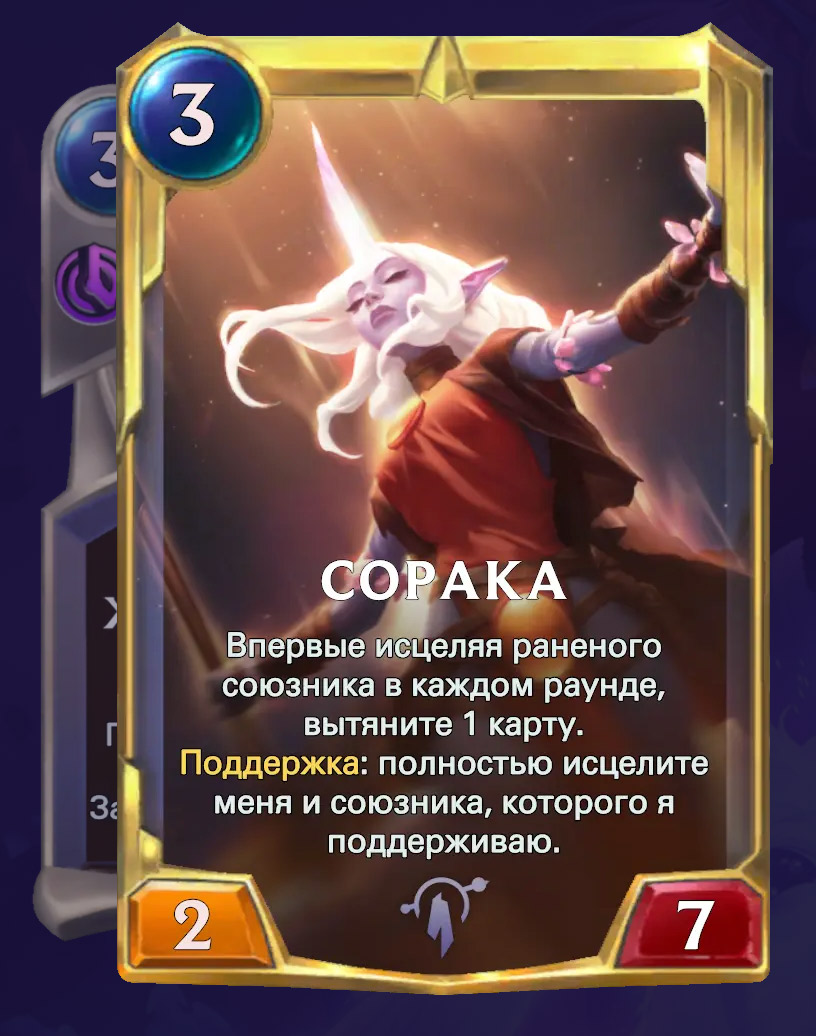 Сорака — вот что скрепляет эту колоду. Она позволяет проводить размены выгодно, восстанавливая здоровье любому существу, вместе с которым атакует.