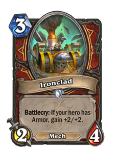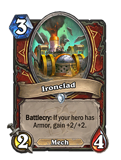 Боевой клич: получает +2/+2, если у вас есть броня.