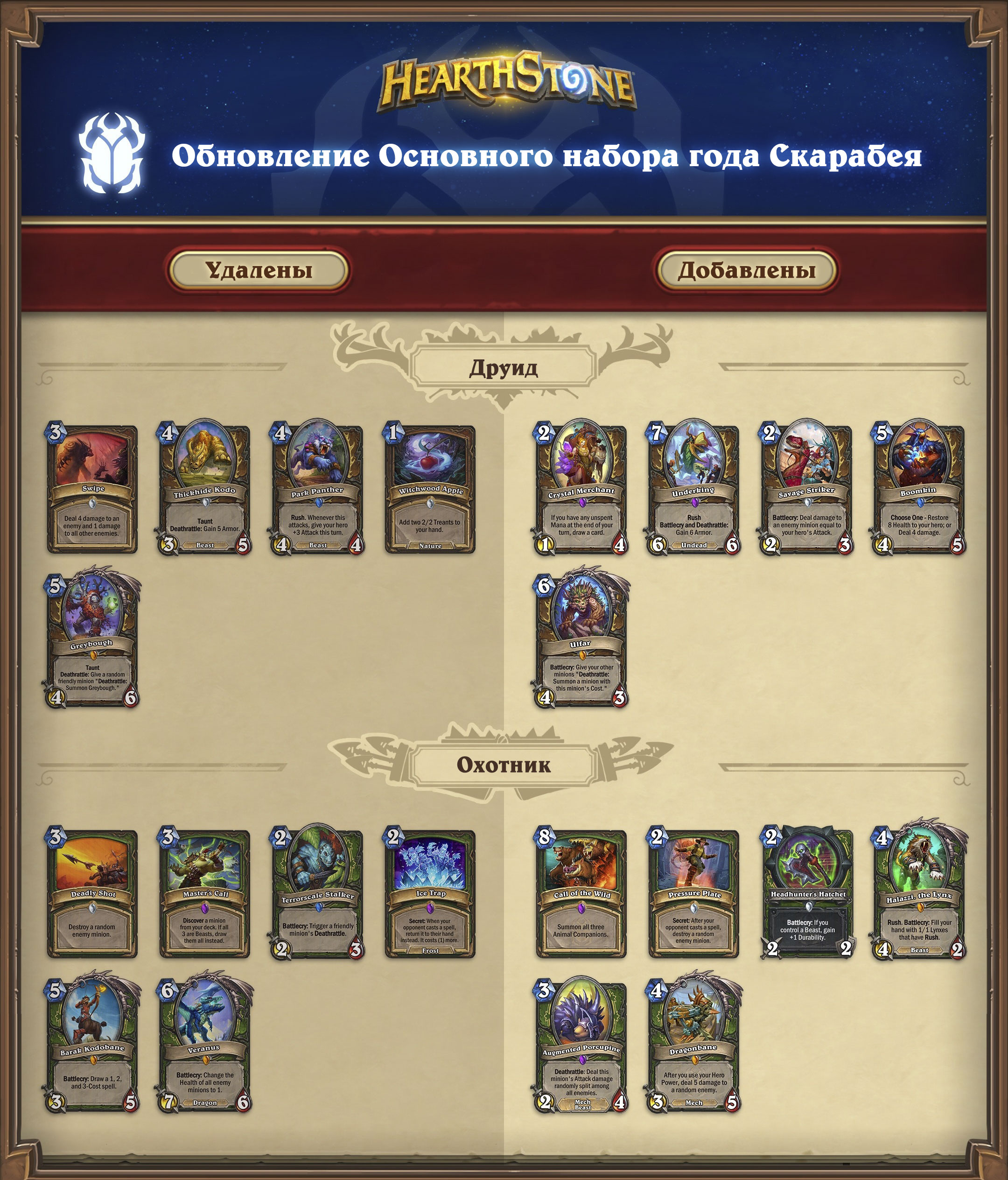 Мы убираем целый ряд крайне влиятельных карт, чтобы открыть новые возможности для геймдизайна и позволить классам исследовать новые стратегии без привязки к старым доминирующим эффектам. Размах, Потасовка и Взрыв трупа лишь примеры. Одним из крупнейших изменений станет удаление Шага сквозь тень — карты, которая сформировала Разбойника еще на самой заре Hearthstone. Нам не терпится увидеть, в какую сторону будет развиваться класс, как только эта культовая карта сама уйдет в тень.