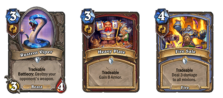 Начиная с этого года «Можно обменять» будет постоянным ключевым словом, а значит будет появляться среди большинства дополнений в обозримом будущем, так же как «Натиск» или «Божественный щит». Поскольку на данный момент «Можно обменять» встречается только в картах «Сплоченных Штормградом» и «Разделенных Альтераком», мы начнем с того, что добавим несколько популярных карт из этих наборов в Основной набор. Однако новые карты со свойством «Можно обменять» будут появляться и в дополнениях года Волка, и после них.