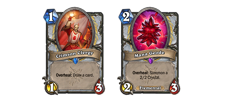 Поэтому вместо этого мы создали новое ключевое слово, которое делает исцеление более гибким и полезным: «Сверхисцеление». Существа со «Сверхисцелением» получают дополнительный эффект, который срабатывает, когда вы исцеляете такое существо сверх максимального здоровья. «Сверхисцеление» — новая постоянная классовая механика, как «Серия приемов» для Разбойника. Это означает, что в будущем появится больше карт со «Сверхисцелением» в течение этого года и следующих. Это также означает, что мы продолжим создавать для Жреца новые эффекты исцеления, включая карты, которые намеренно будут сотрудничать со «Сверхисцелением».