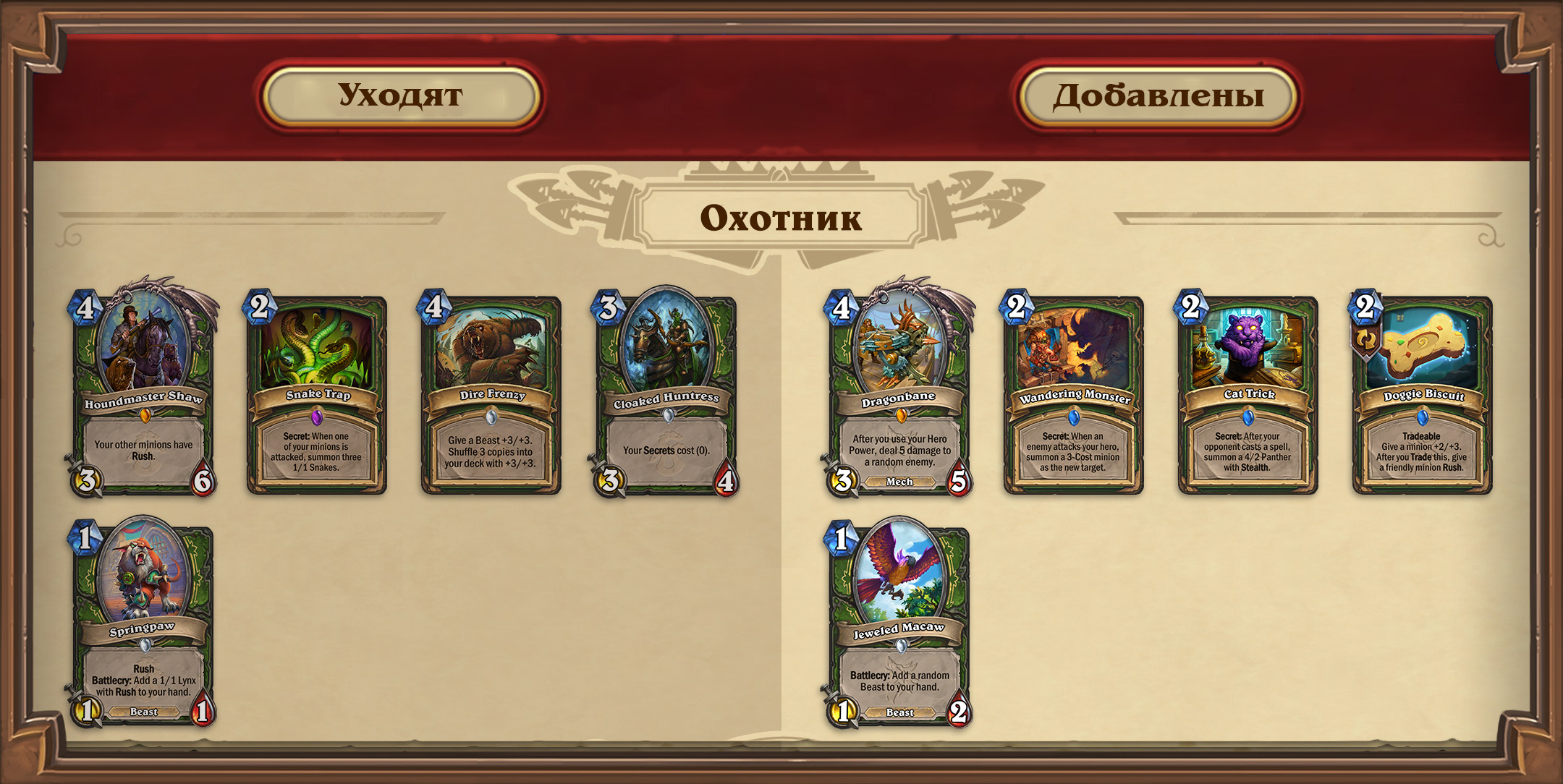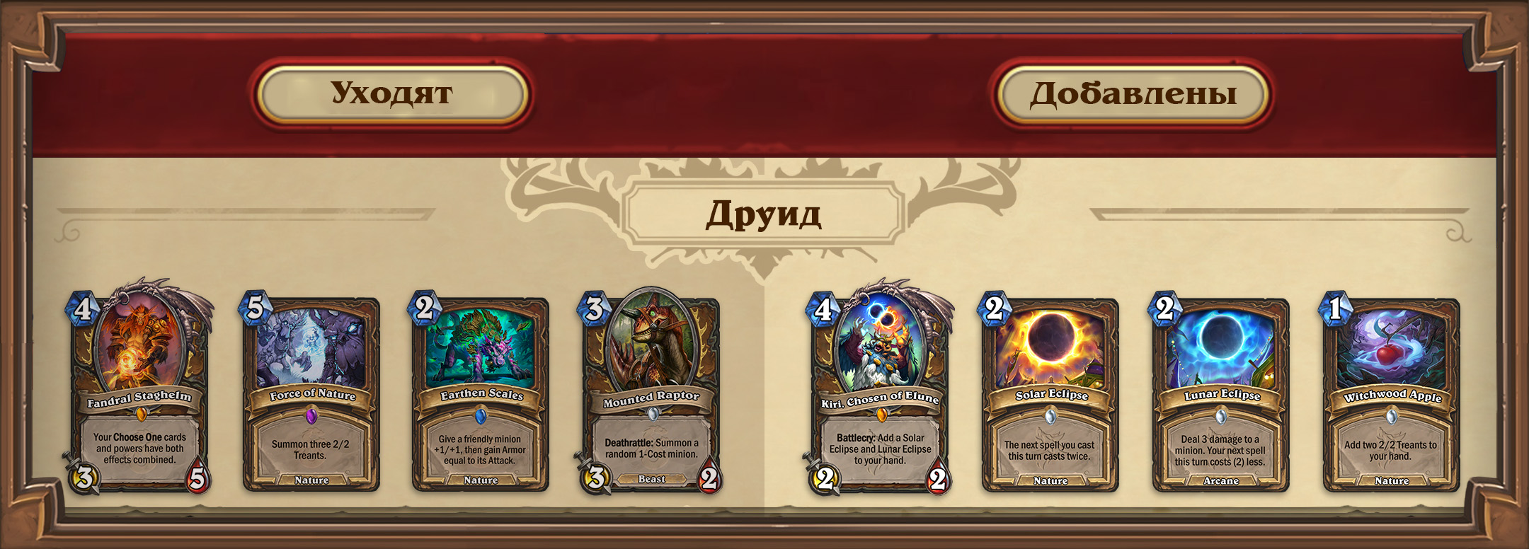 Основной набор получит все изменения в апреле, вместе с выходом «Фестиваля легенд». Не забывайте о новых анонсах карт дополнения в ближайшие дни!